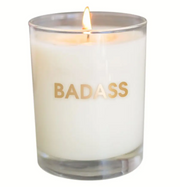Our Badass candle is the perfect blend of spicy amber, citrus and lavender. Go from burnin to boozin. Enjoy the candle while it burns then freeze it after to use as a rocks glass. Everyone loves a two-fer!