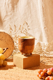 Wine barrel inspired vessel made from natural Acacia wood.