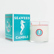 10 oz. This incredible candle features a GMO-free soy wax base and sturdy cotton wick, for an extra clean & beautiful burn. Enjoy 80 hours of our signature seaweed scent: a cool, sea lily summer breeze, with just a hint of sweetness.