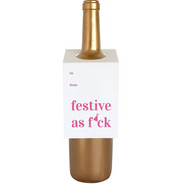 Chez Gagne "Festive As Fuck" Wine & Spirit tags are letterpress printed on a vintage printing press.