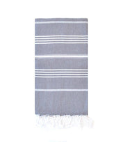 Loomed in the world's finest textile region, this Turkish towel is both eco-friendly and lavish. Quick-drying and thin, this towel is lightweight, multi-functional, and long-lasting. Makes the perfect beach towel, bath sheet, sarong, tablecloth, scarf, and much more. Colors do not bleed or fade with wash.
