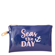 This is the perfect little bag to throw in your purse or use as a clutch. The exposed top zipper and side clip will keep your makeup must-haves safe and sound.